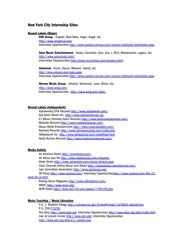 We offer a robust music industry internship program. Our students have interned at organizations such as the Mingus Foundation, EMI/Blue Note Records, Nonesuch Records, Jazz at Lincoln Center, ASCAP, VH1 Save-the-Music, the Bunker Studio, Chelsea